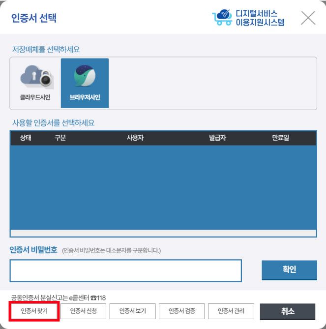 35 인증서 선택 창에 '클라우드 사인'만 보이고, 저장된 인증서가 보이지 않습니다.