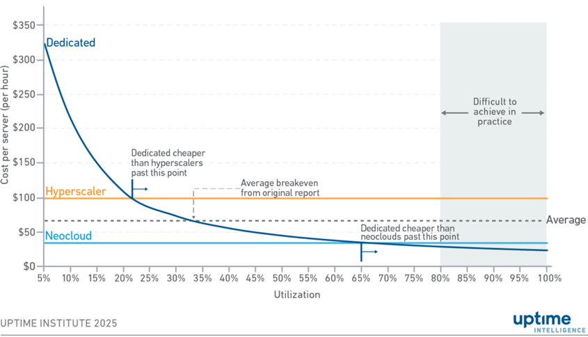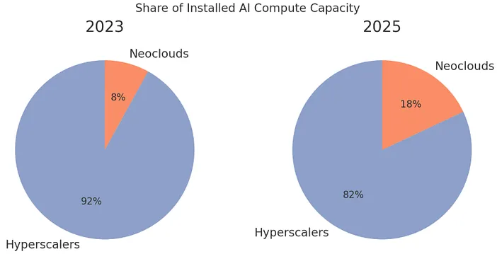 1. 들어가며 급증하는 AI 워크로드를 실행하기 위한 인프라 확보는 AI 시대의 핵심 경쟁력을 좌우하는 최우선 과제로 대두되고 있다. 작게는 대학원 연구실이나 개인, 크게는 정부 차원에서 최우선 아젠다로 다루고 있으며, 대한민국 정부에서도 AI G-3로 가기위한 최우선 과제로 GPU 확보 및 AI 데이터센터 구축, 그리고 더 나아가서 이를 위한 에너지 고속도로 구축까지 전방위적으로 추진하고 있다. 하지만 이렇게 물리적인 인프라만으로 모두가 혜택을 누리는 것은 현실적으로 불가능하다. 대규모 인프라는 차치하고, 작은 규모의 AI 인프라를 확보하기 위해서도 초기 투자 및 이를 상시적으로 운영하기 위한 부담을 웬만한 조직에서 감내하기가 쉽지 않기 때문이다. 이에 기존 클라우드 서비스 벤더들은 IaaS의 AI 특화 버전이라고 할 수 있는 GPUaaS(Gpu as a Service)를 통해 GPU를 직접 소유하며 운영하는 데 어려움을 겪는 고객의 새로운 니즈를 충족시키려는 사업 확대를 꾀하고 있다. 이 와중에 오로지 GPU 서비스에 특화된 전문 클라우드 기업이 등장하기 시작했으며 이들이 GPUaaS 시장에서 하이퍼스케일러의 독점 구도를 뒤흔들기 시작했다. 이렇게 GPUaaS에 집중하는 차세대 클라우드 서비스를 지칭하는 표현으로 ‘네오클라우드(Neocloud)’가 등장하게 되었다. 코어 위브 (CoreWeave), 람다(Lambda), 크루소(Crusoe), 네비우스(Nebius) 등이 대표적인 네오클라우드 회사이다. 2. 네오클라우드 개요 2.1 등장 배경 네오클라우드라는 용어는 2024년 말 처음 사용되기 시작했다고 한다. AWS, 애저, GCP 같은 기존 클라우드 서비스에서는 수백 가지 범용 서비스를 제공하는 반면, 네오클라우드는 100% AI 및 고성능 컴퓨팅을 필요로 하는 워크로드에 집중한다. 이 새로운 인프라 카테고리가 등장하여 관심을 받게 된 가장 직접적인 원인은 GPU 공급 부족이라는 것이 정설이다. 2022년 11월 챗GPT 출시 이후 생성형 AI 수요가 폭발하면서, 2024년 초 하이퍼스케일러들은 심각한 GPU 부족에 직면했다. 엔비디아 H100 인스턴스 하나 가격이 시간당 100달러를 초과했고, 대기 기간은 수개월에 달했다.1) 마이크로소프트가 2024년 한 해에만 485,000개의 엔비디아 GPU (약 310억 달러 규모)를 확보했고, 메타의 GPU 보유량은 60만 개로 추정한다.2) 이 과정에서 AI 스타트업과 연구기관, 일반 기업들은 컴퓨팅 자원 확보에 심각한 어려움을 겪을 수밖에 없었다. 이러한 공백을 메우기 위해 GPU 전문 클라우드 제공업체인 네오클라우드가 등장하게 되었다. 네오클라우드는 유연한 계약, 빠른 프로비저닝, 특화된 인프라 구성을 제공하며, 또한 기존 하이퍼스케일러 클라우드 서비스 제공사보다 매우 저렴한 가격으로 GPU를 제공하여 특히, 소규모 AI 스타트업에게 매력적인 선택지가 되었다. 이에 하이퍼스케일러의 GPU 독점 체제가 네오클라우드 기업의 약진으로 인해 완화되어가는 추세이다. 그림 1 하이퍼스케일러 vs. 네오클라우드: AI 계산 용량 점유율 변화 (출처: Medium) 네오클라우드의 상당수는 암호화폐 채굴기업에서 전환했다는 점도 주목할 만하다. 코어위브는 2017년 아틀란틱 크립토라는 이름으로 암호화폐 채굴을 시작했다가 2019년 AI로 전환했고, 크루소 역시 이전 회사 이름인 크루소 에너지 시절 유사한 경로를 거쳤다. 암호화폐 붐 시기에 구축한 GPU 최적화 데이터센터 인프라가 AI 워크로드로 재활용된 것이다. 2.2 하이퍼스케일러 대비 차별점 네오클라우드가 하이퍼스케일러와의 경쟁에서 입지를 확보할 수 있는 가장 큰 무기는 가격 경쟁력이다. DGX H100 동급 인프라 기준으로 네오클라우드 평균 시간당 34달러, 하이퍼스케일러 평균 98달러로 약 65% 비용 절감이 가능하다. (그림 7) 그림 2 하이퍼스케일러와 네오클라우드의 이용률 기준 시간당 서버 비용 비교 (출처: Uptime) 그림 7에서는 전용 인프라 보유, 하이퍼스케일러 임대, 네오클라우드 임대 이 세가지 타입을 한 눈에 비교할 수 있는 그래프를 보여주고 있다. 이 비교는 보유 자원 혹은 임대 자원의 사용률(utilization)에 따른 비용을 나타내고 있는데, 보유한 전용 인프라를 사용할 경우 100% 사용률이 담보된다면 가장 경제성이 높은 것으로 나와 있다. 임대의 경우 실제 사용 비용만 지불하므로 사용률과 관계없이 일정한 비용이 소요된다.3) 하이퍼스케일러는 사용률 약 20% 언저리부터 전용 인프라보다 가격 경쟁력이 떨어지기 시작하지만, 네오클라우드의 경우 사용률 65%까지는 전용 하드웨어보다 확연히 비용이 낮음을 알 수 있다. AI 워크로드의 특성상 65%의 사용률을 상시 유지하는 것은 현실적으로 매우 가능성이 낮은 시나리오이므로 네오클라우드의 비용 효율성은 꽤 높음을 알 수 있다. 그리고 무엇보다도 필요할 때 즉시 쓸 수 있다는 것이 네오클라우드의 또 다른 강점이자 특징일 것이다. 하이퍼스케일러와 네오클라우드의 이러한 차이는 서비스 모델의 근본적인 차이에서 비롯된다.