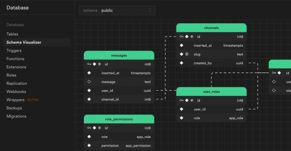 그림 2 수파베이스 스튜디오의 스키마 비주얼라이저 화면 예 (출처: supabase.com)